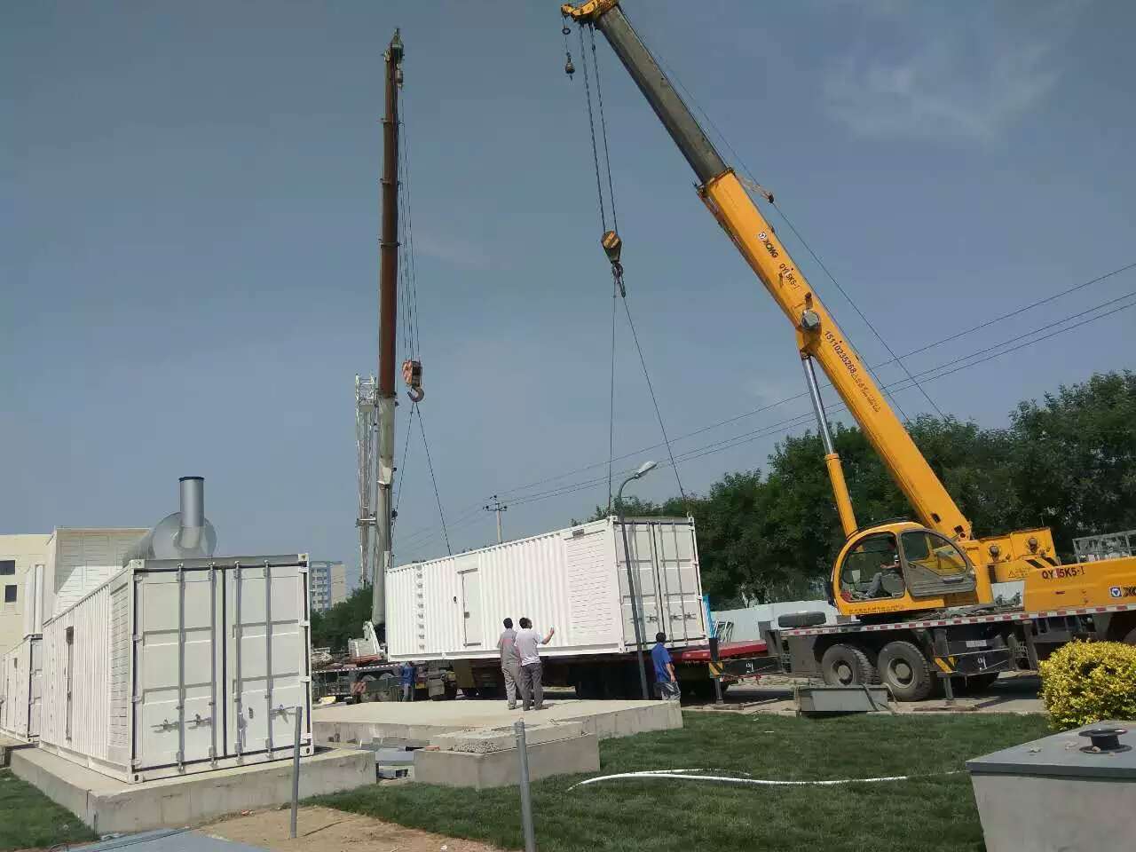 一種是汽車吊裝,汽車吊的好處是轉移高效,機動強,且吊裝設備對路面破壞性小,但起吊時,必須將支腳落地,不能負載行駛,且對工程場地要求較高,必須平整、堅實路面,才能保證操作的安全性和穩定性;